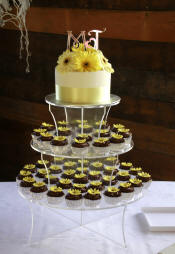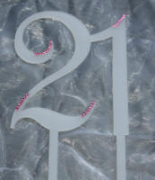 acrylic in clear, black, white, red or mirror silver. Please note: the backing on the mirror toppers is pale